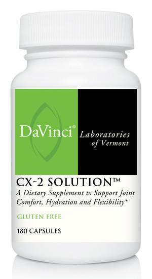 CX-2 Solution is an advanced formula designed to support joint comfort, hydration, and flexibility, muscle function, connective tissue health and the maintenance of synovial fluid viscosity within the joints. It's a synergistic combination of well-recognized nutrients that may be beneficial for those who experience joint & muscle discomfort and/or limited joint mobility and elasticity.