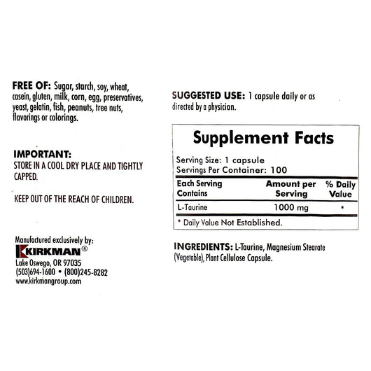 L-Taurine 1000 mg 100 caps by Kirkman Labs