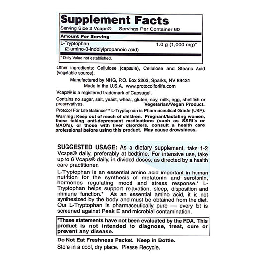L-Tryptophan is an essential amino acid important in human nutrition for the synthesis of melatonin and serotonin, hormones regulating mood and stress response.* L-Tryptophan helps support relaxation, sleep, disposition and immune function.* As an essential amino acid, it is not synthesized by the body and must be obtained from the diet. Our L-Tryptophan is pharmaceutically pure -- every lot is screened against Peak E and microbial contamination.