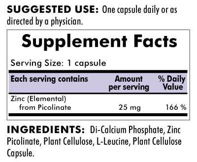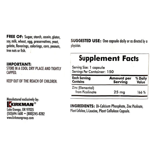 Zinc Picolinate 25 mg 150 caps by Kirkman Labs